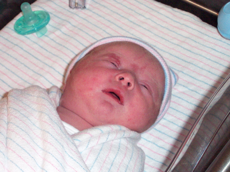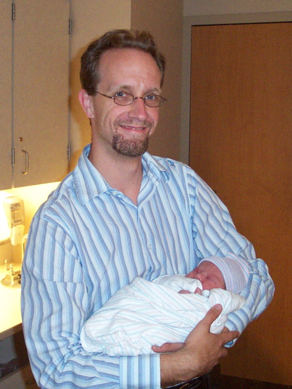 About 1:20AM, Jennie felt her first contraction, so we called the doctor, called Jennie’s mom to come over so she could stay with Sabrina, and got in the car and headed for Sky Ridge. Of course, the highway offramp from E-470 to southbound I-25 was closed, so I had to take the northbound ramp instead. Then, the exit at Dry Creek Road was closed, so I had to go all the way north to Arapahoe Road and turn around to come back south and get to the hospital!